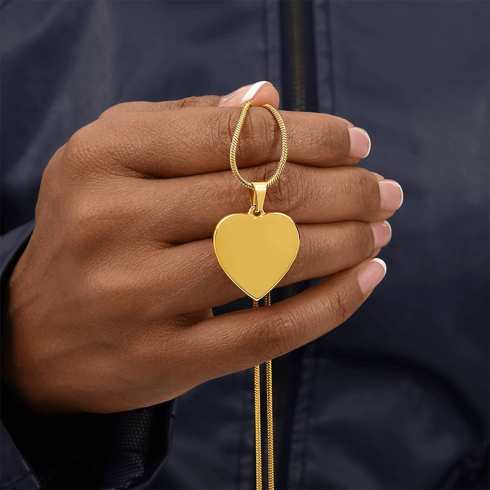 The Engraved Heart Necklace is attached to an adjustable snake chain, and made from high quality stainless steel, and is also available in an 18K yellow gold finish option.